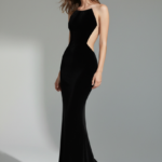 Minimal halter yaka formu, yan dekolteleri ve açık sırt detayıyla beli vurgulayan ve silueti zarifçe uzatan şık bir gece elbisesi. Akıcı krep kumaş, vücuda kusursuz şekilde oturarak güçlü, modern ve sofistike bir duruş sunar.